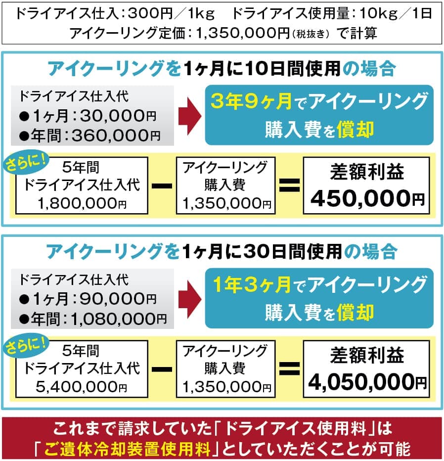 従来のドライアイスや冷蔵庫とは違う新たなご遺体冷却方法で、他社との大きな違いをアピールでき新規集客へ繋がります。